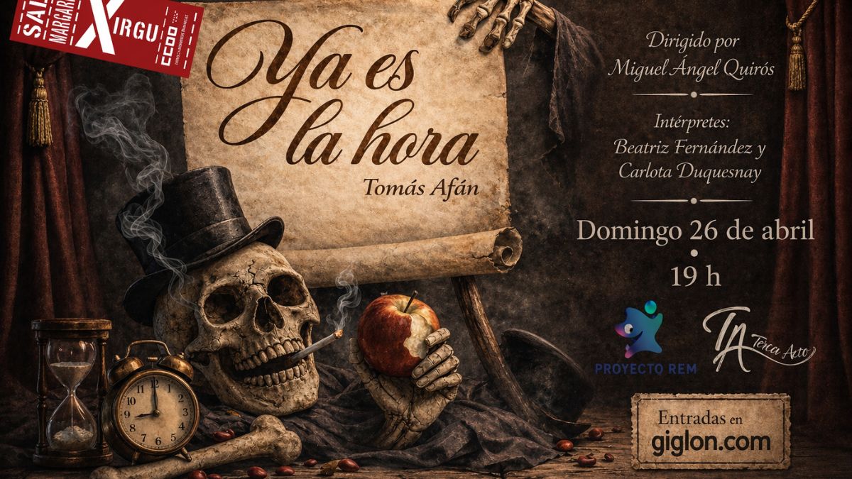 El teatro acoge el domingo 26 de abril la obra “Ya es la hora”, de la Cía AMA, que presenta el encuentro entre una actriz a punto de salir a escena y la Muerte. A partir de esta premisa, la pieza construye un diálogo directo que combina humor e ironía con una reflexión sobre la existencia.