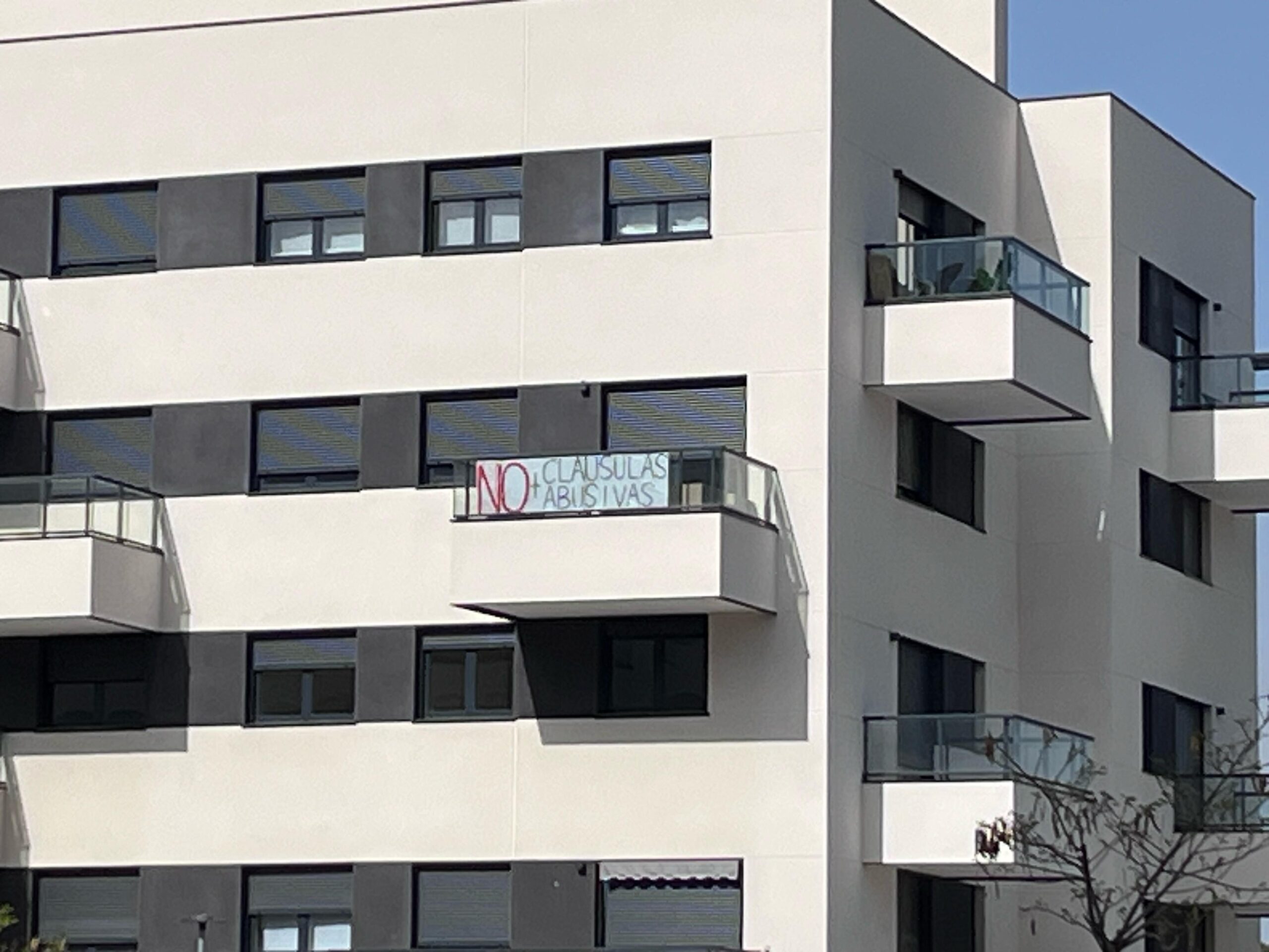 La acción se produce apenas unas semanas después de que varios bloques de la calle Islas Caimán amanecieran con pancartas de protesta en sus balcones. El mensaje “NO + cláusulas abusivas”, escrito con grandes letras, puso en el centro del debate público una problemática que, según sus impulsores, afecta a decenas de familias en el barrio.
